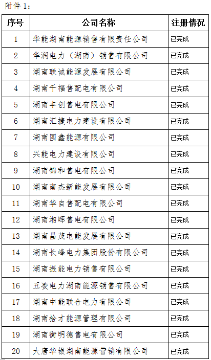 湖南電力交易中心有限公司關于公布售電公司(第一批)注冊情況的通知