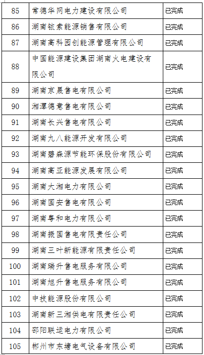 截至7月11日,經湖南省能源局公示、進入《湖南省售電公司目錄(第一批)》的107家售電公司已全部按要求完成注冊資料線上填報、附件上傳及線下紙質資料遞交。經湖南電力交易中心注冊受理、資料完整性及形式審查,107家售電公司已全部注冊完成,即日起生效,詳細情況見附件1。完成注冊工作的售電公司應嚴格遵守國家和我省電力體制改革有關規定,誠實守信,依法經營,主動接受各級政府和能源監管機構監管、社會各界監督。
