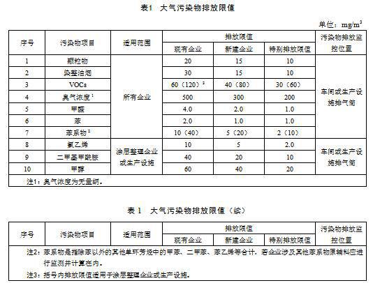 (1)自2015年9月1日起至2016年8月31日止,現有企業執行表1規定的現有企業大氣污染物排放限值;自2016年9月1日起,現有企業執行表1規定的新建企業大氣污染物排放限值。