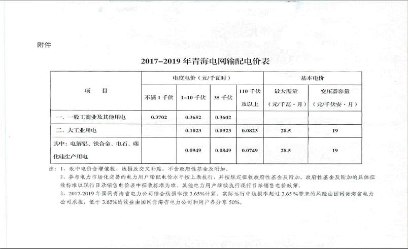 附件:2017-2019年青海電網(wǎng)輸配電價表