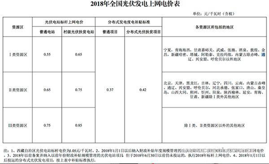 為落實國務院辦公廳《能源發展戰略行動計劃(2014-2020)》關于新能源標桿上網電價逐步退坡的要求,合理引導新能源投資,促進光伏發電產業健康有序發展,決定調整2018年光伏發電標桿上網電價政策。經商國家能源局,現就有關事項通知如下: