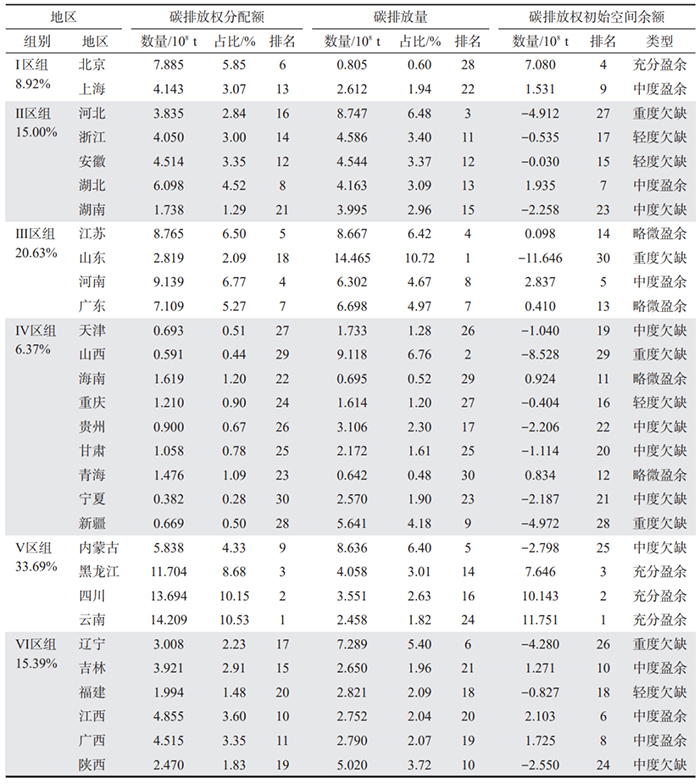 表1? 2017年我國30個省級行政區碳排放量、碳排放權分配額及其初始余額?