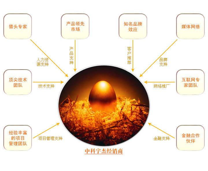 中科宇杰憑著多年的行業(yè)運作積累和500多個節(jié)能項目管理經(jīng)驗,結(jié)合節(jié)能行業(yè)的現(xiàn)狀,創(chuàng)造性地提出“節(jié)能商學院”式的渠道發(fā)展政策,綜合性地為全國有志于投身節(jié)能事業(yè)的企業(yè)、人士提供一個節(jié)能行業(yè)企業(yè)的“孵化器”平臺。此平臺不但在渠道的政策方面,給予經(jīng)銷商靈活的操作方式,充分發(fā)揮不同類型經(jīng)銷商的優(yōu)勢和長處,還為經(jīng)銷商提供行業(yè)資訊、技術(shù)培訓、商務(wù)操作、投融資、人力資源、客戶資源、互聯(lián)網(wǎng)支持等方面給予強有力的支持,讓你的投資不但有經(jīng)濟收益,還能在企業(yè)經(jīng)營方面得到諸多的收益。中科宇杰不但自己做大做強,也幫助我們的合作者成長,共同成為節(jié)能行業(yè)的翹楚。