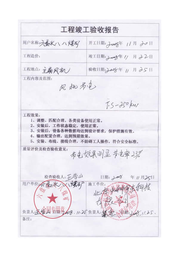 經(jīng)過嚴(yán)格的測試和同期的用電對比,節(jié)能效率達(dá)到23%,投資回報期一年,節(jié)能效率和投資回報期都超過了煤礦領(lǐng)導(dǎo)的預(yù)期。八八煤礦由此得到客觀的經(jīng)濟(jì)效益和社會效益。