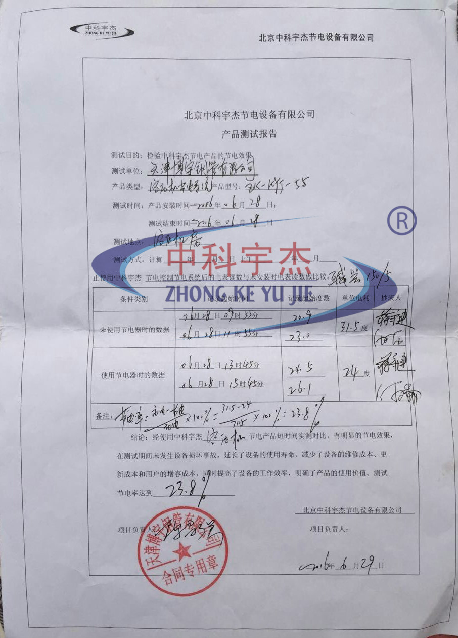根據(jù)空壓機和水泵的應(yīng)用情況進行技術(shù)難點攻克,這次的節(jié)能改造得到了很好的節(jié)能效果。設(shè)備安裝后,經(jīng)過嚴格測試,對比安裝前的能耗來看,安裝后的空壓機能耗降低了23.8%,水泵能耗降低了27.2%。按保質(zhì)十五年計算,此次節(jié)能改造能為天津博宇鋼管有限公司帶來二百二十萬人民幣以上直接經(jīng)濟效益。