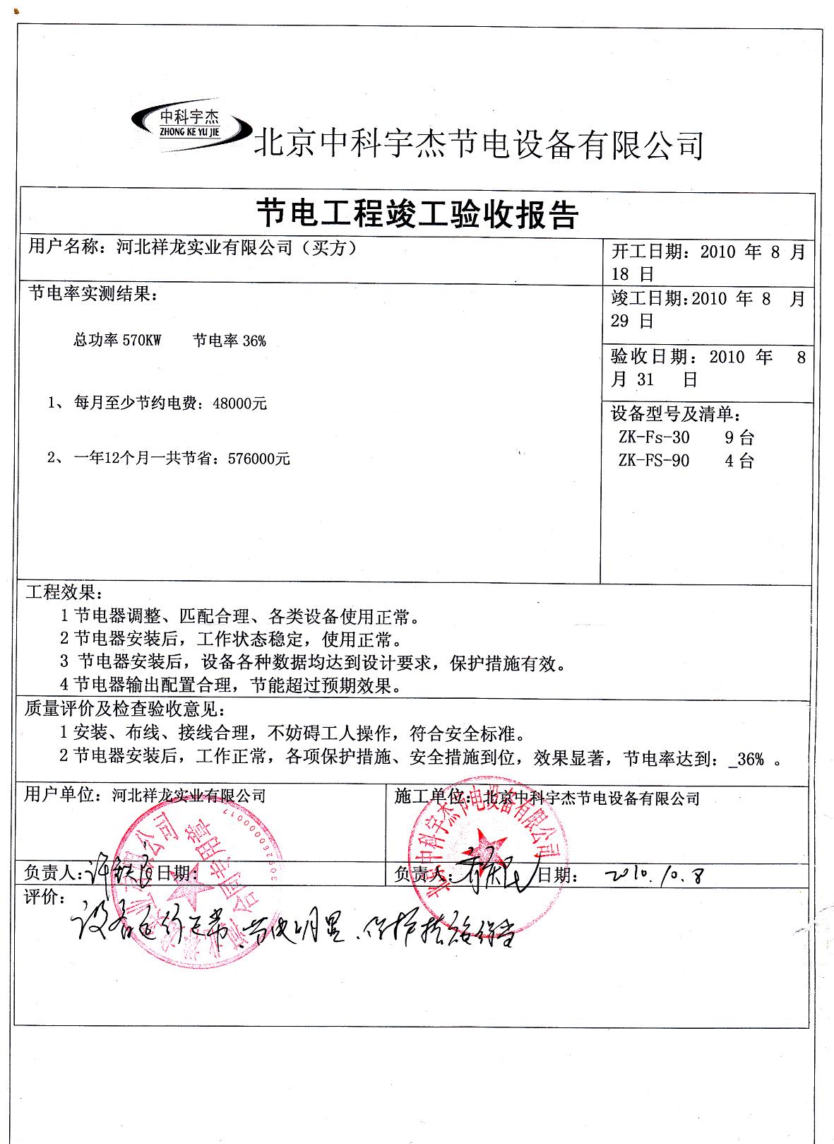 安裝調試驗收,節能效率達到36%,投資回報期一年半,按質保十年計算,此項節能工程能為祥龍實業帶來570萬以上人民幣的直接效益。