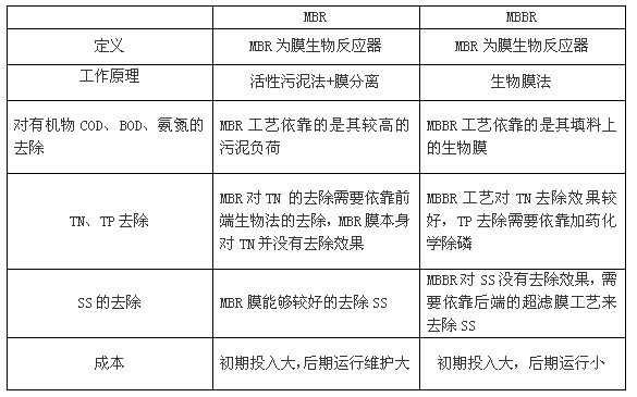 污水處理MBR與MBBR工藝中存在著哪些區別
