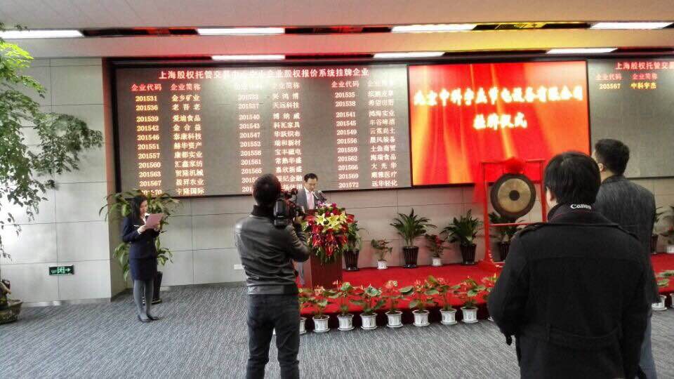 2015年1月20日,隨著董事長郝澤忠與總裁徐科飛的攜手一敲,上海股權托管交易中心內銅鑼的響起,北京中科宇杰節電設備有限公司(下稱:中科宇杰)正式登陸Q板市場。股票簡稱:中科節電,股票代碼:203567。